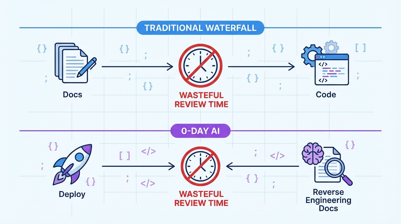 Comparison of traditional vs 0-day AI deployment.