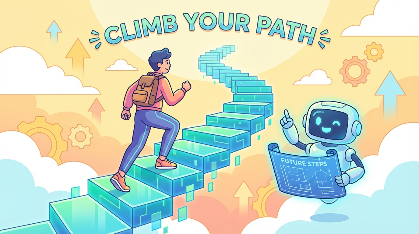 Visualizing AI as a staircase for learning.